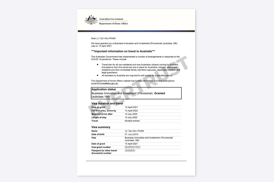 Cả gia đình 7 thành viên cùng được cấp visa 188 trong tháng 04